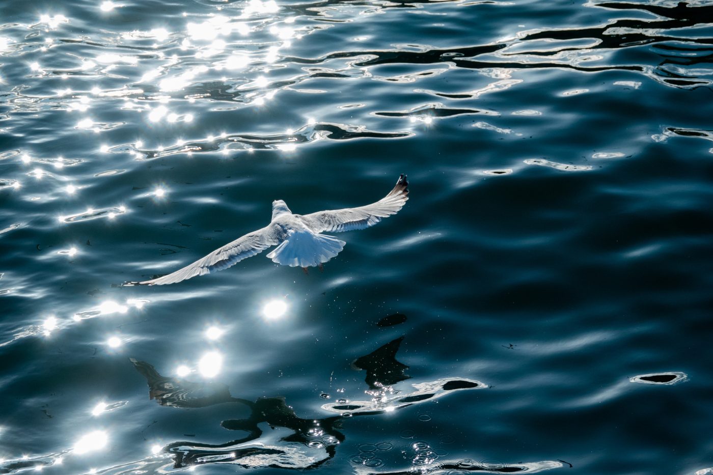 High Angle Top View of Seagulls Flying Above Sea, Beautiful White Bird Flying away, Freedom Concept